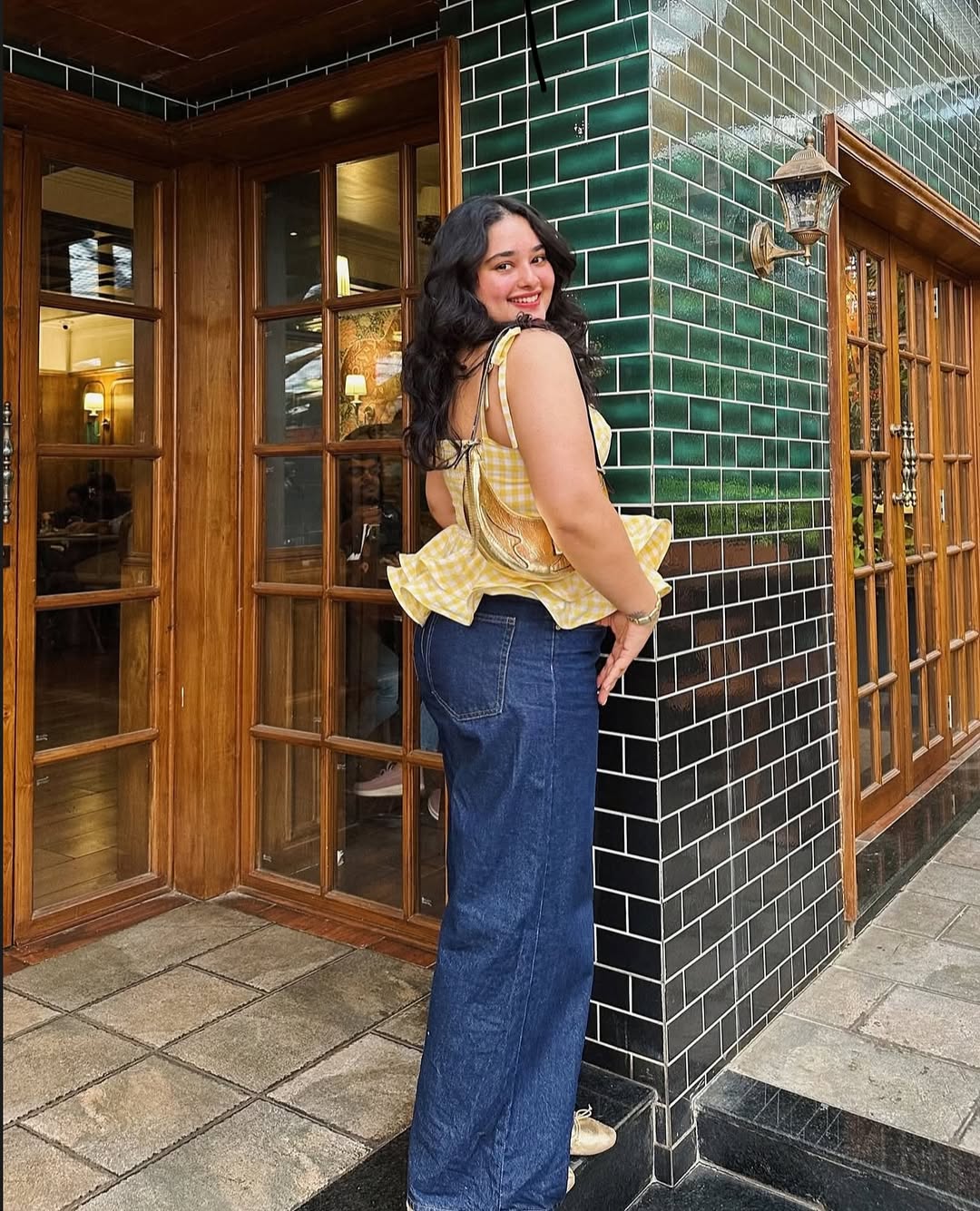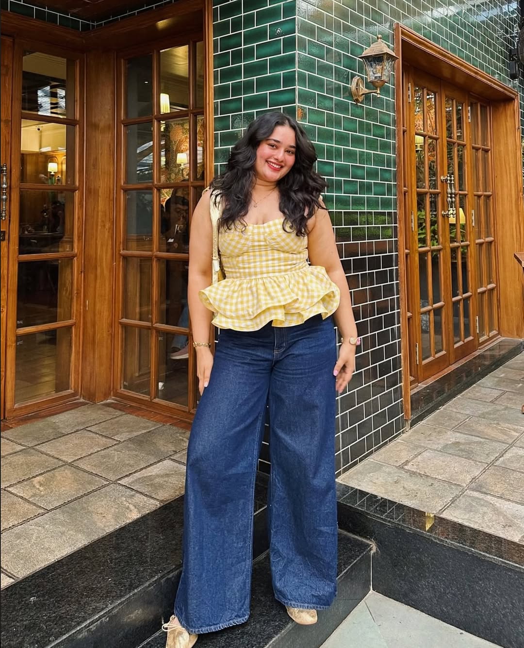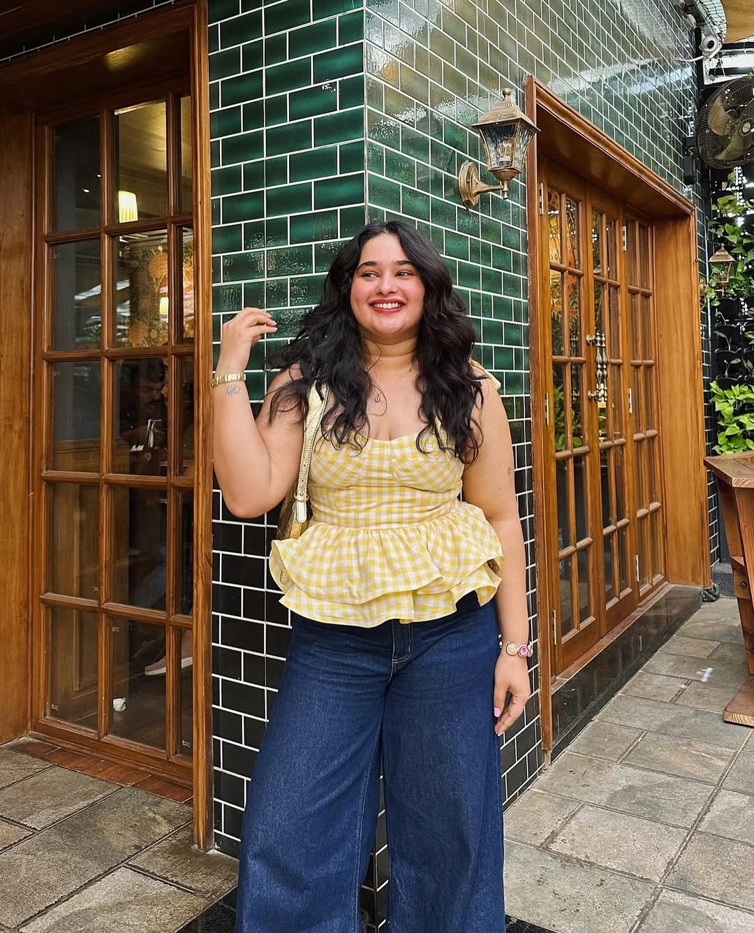 With our Yellow Gingham Midi Skirt for the perfect look.